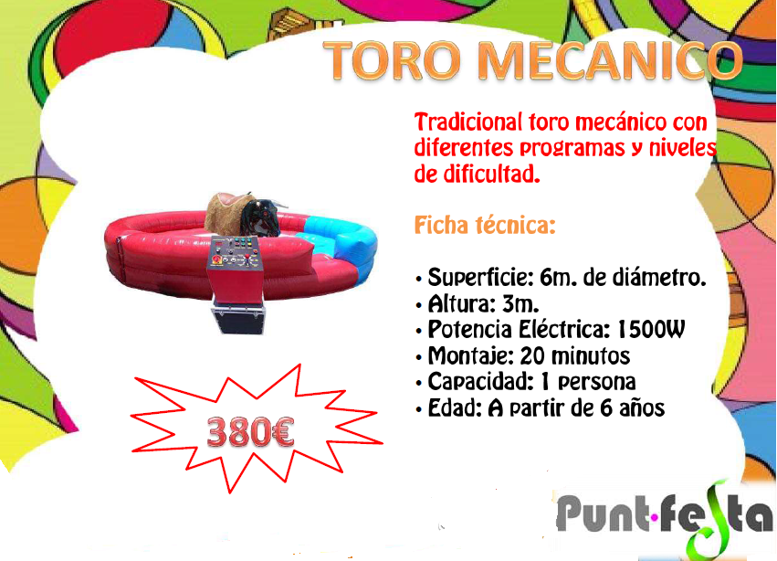Divertit toro mecànic amb diferents programes i nivells de dificultat programables.