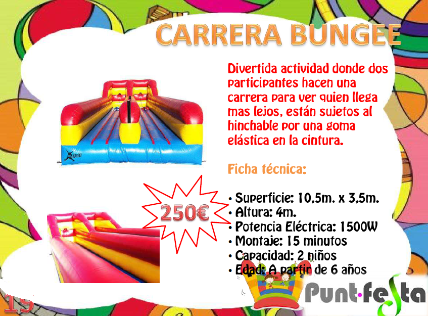 Divertida carrera Bungee, els dos participants es lliguen d'una corda elàstica a la cintura i es tracta de veure qui arriba mes lluny o qui agafa l'objectiu a l'altre banda.