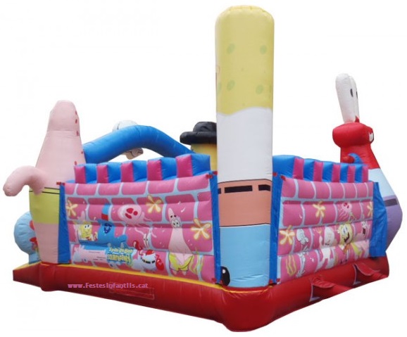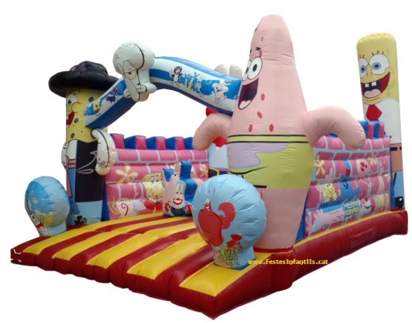 Espectacular inflable tematitzat de Bob Esponja i altres personatges, inclou obstacles al seu interior